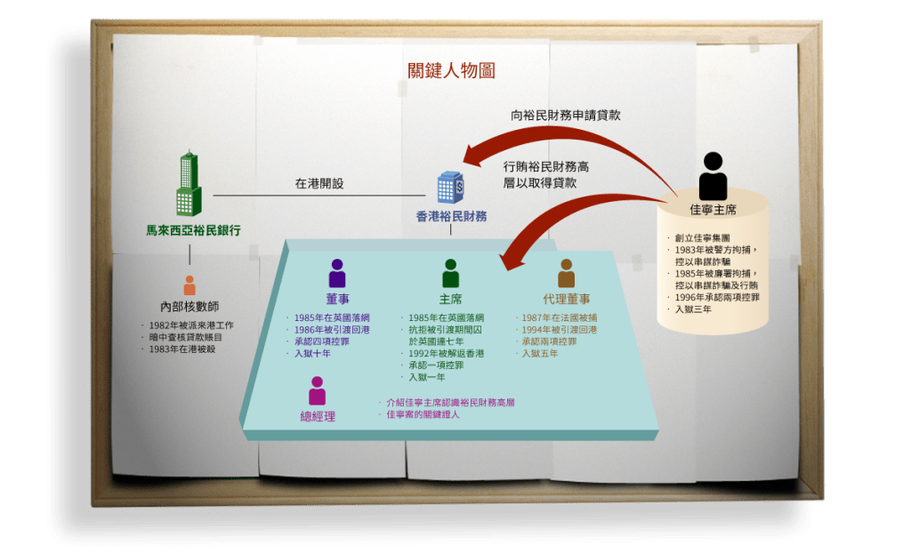 据廉署调查,陈松青的资金是由一间名为裕民财务借出,前前后后批出8亿美元(相等于60多亿港元),是当年全港最大一单贷款,而且这些贷款大多数是在没有足够抵押或保证的情况下批出。值得留意的是,裕民财务是马来西亚国营裕民银行旗下的财仔,若要由马来西亚运一大笔资金来港,并非买通几个人便可,而是要“直通天庭”。市场亦有猜测,马来西亚政府最高核心人士当时对此事知情,因为这笔钱大概是当时马来西亚外汇储备的三分一、甚至一半。