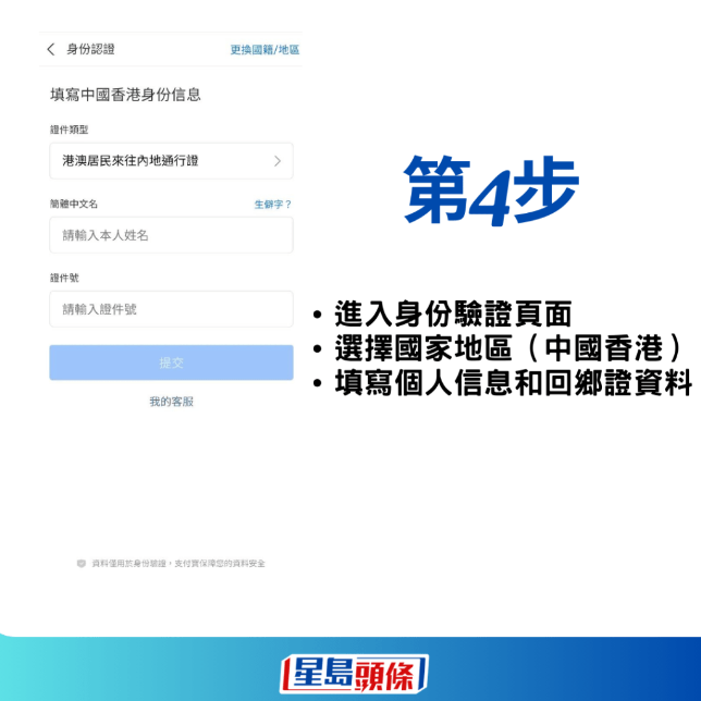 随着去山姆超市扫货成港人北上消费新热点,加上劲敌Costco开市客深圳分店将于本月12日开幕,港人对内地电子支付工具的需求相信越来越大。 虽然Alipay HK提供内地跨境支付服务,只要绑定香港信用卡、银行账户或完成身份认证,便可以毋须预先兑换人民币,都能在内地指定商户消费。 不过,想在内地享用支付宝提供的完整功能和服务,最好还是开通内地支付宝。 现时只要有回乡证和香港电话卡,就可以使用内地支付宝,对于用户而言更加便捷。