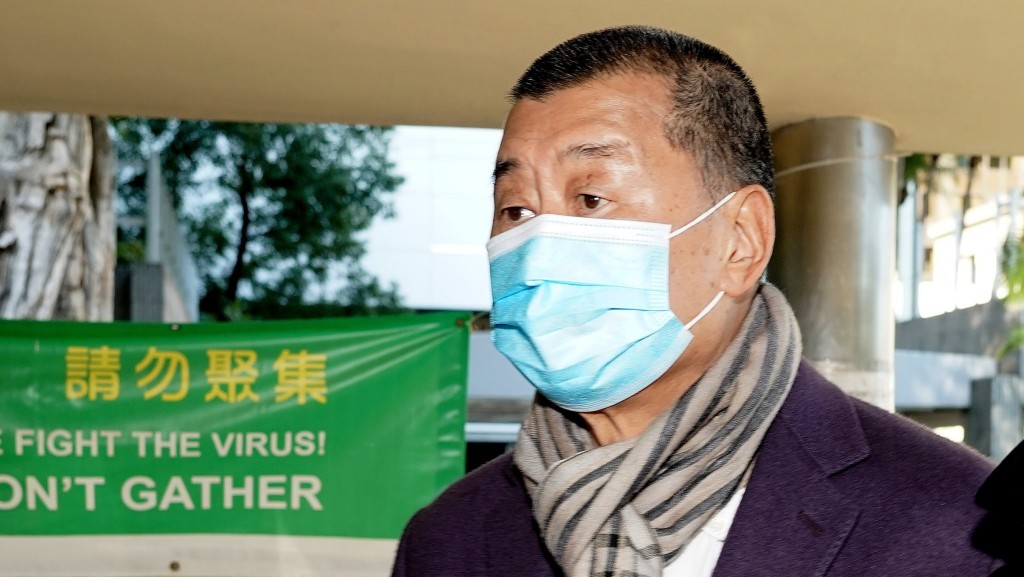 10:00 黎智英今穿啡色毛领皮褛应审