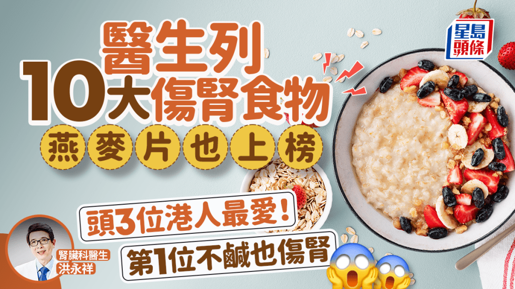 吃燕麦片也伤肾?有肾脏科医生指,不良饮食习惯可令肾脏加速退化,甚至造成不可逆转的伤害。他列出10大常见的伤肾食物,其中燕麦片也上榜。首3位伤肾食物更是港人最爱的食品,位列第一的食物味道不咸但却最伤肾!