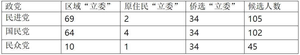 今年台湾选举的区域“立委”竞争激烈,民进党因执政包袱,被认为有可能失去“立法院”多数党的优势;相对来说,国民党的“立委”选战行情看涨,将有可能是三党区域“立委”当选人数最多的政党。
