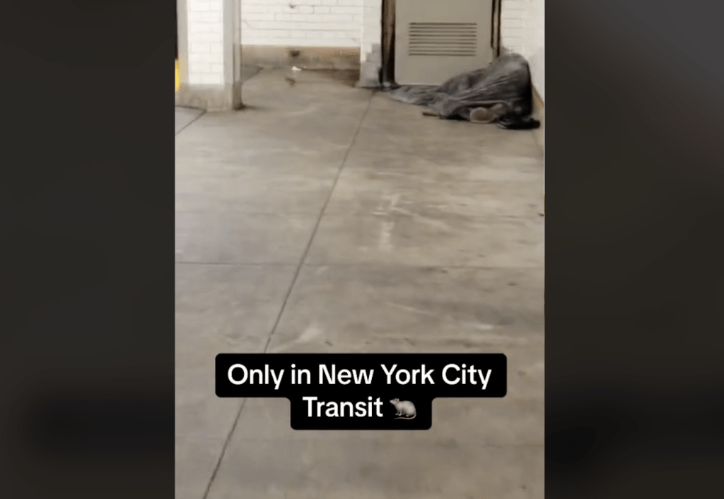 这段由网民@six4bk78在1月8日于社交平台发布的影片,拍摄背景在纽约市一个地铁站内,一名无家可归者盖着灰色毯子睡在月台尽头的地板上,只露出鞋子。 影片一开始,就见到有老鼠从这名流浪汉的毯子中跑出,一只、两只、三只,拍摄者不禁边拍边惊讶地叫道“哟、哟”,然后一直走近流浪汉,想看清楚甚么状况。