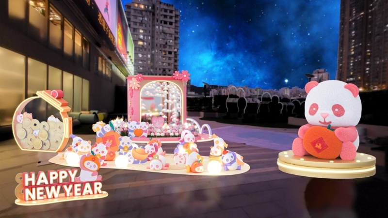 ▲荃湾广场特地打造“幸福熊猫新春园”!