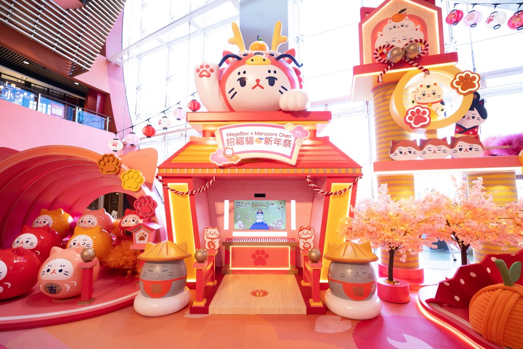 MegaBox联乘日本文创木芥子招福猫工艺师渡辺凉子(Marucoro Chan),推出全港首个“和风木芥子招福猫の新年祭”大型贺年装置。