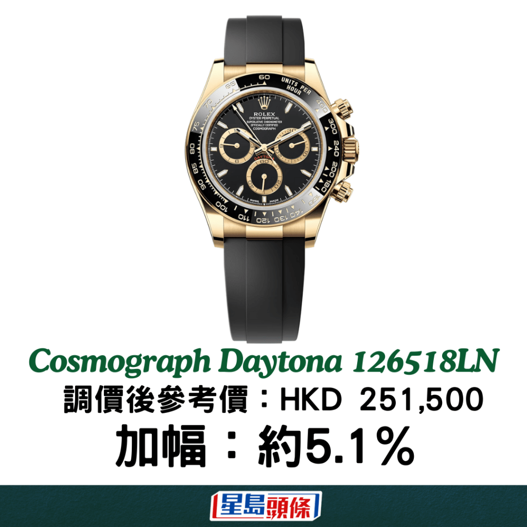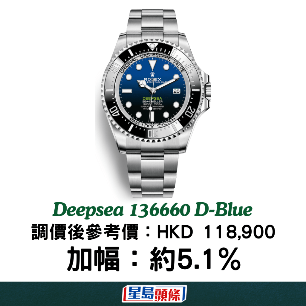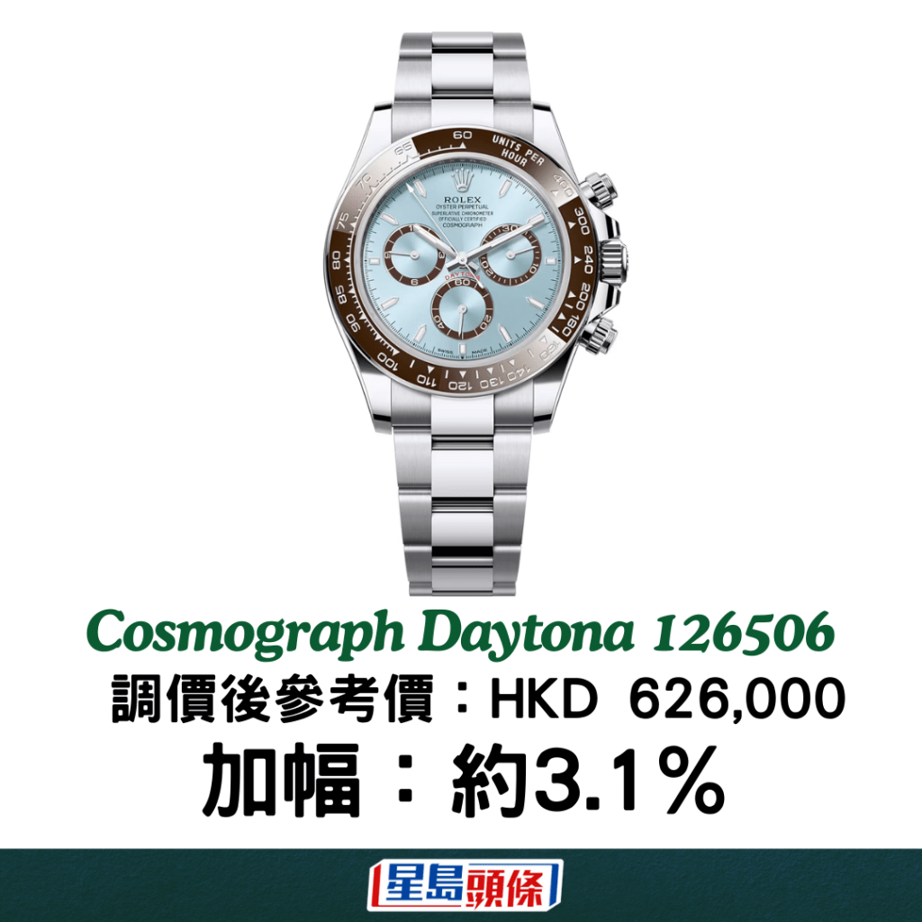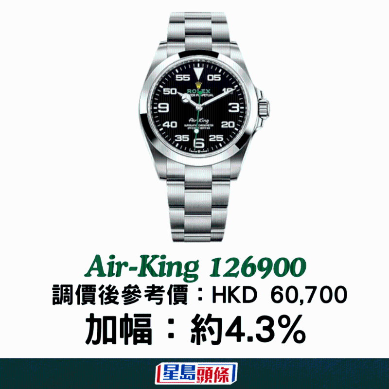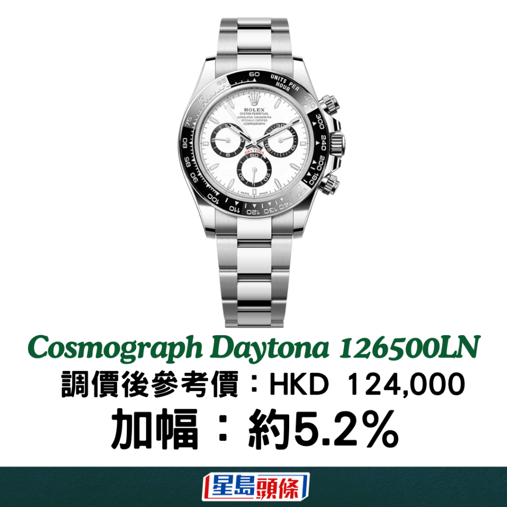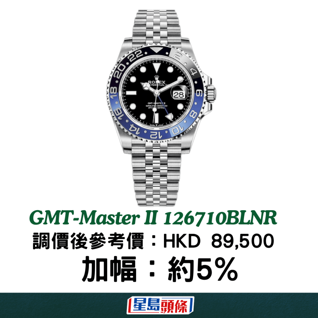彭博报道,各地市场的加价幅度差异,与不同地区的经济状况、汇率波动以及市场需求变化相关。英国及欧洲市场约4%,内地市场则是约7%,美国地区定价维持不变。至于香港平均加幅为4.72%,例如俗称“绿水鬼”Submariner Date 126610LV官方定价由82,800港元加至88,600港元,迫近9万大关。