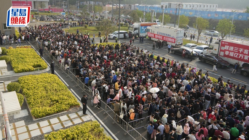 ▲9时许Costco门外已有数万人排队。吴艳玲摄