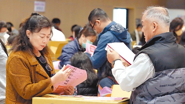 ▲大选13日登场,台北市信义区的投开票所主管主监12日齐聚一堂点领选票。