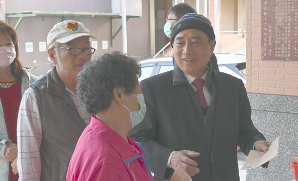 ▲王金平(中右)13日上午到路竹一甲国中的投开票所投票,他与民众话家常。
