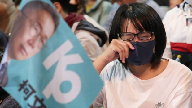▲台湾大选13日投票结束后开票,台湾民众党正副领导人候选人柯文哲、吴欣盈竞选总部出现大批支持者,关心开票情形,看着票数逐渐落后,忍不住落泪。中时网