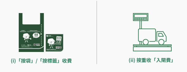 有两种不同的收费方式,一般市民较常用的是收费模式 1:按袋或按标签收费,收费模式 2 则是按重收入闸费。