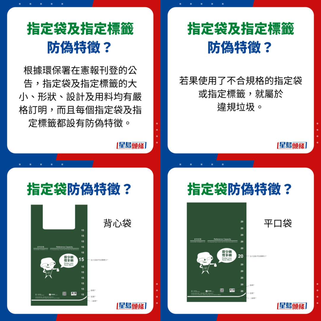 环保署最近在宪报上刊登了一则公告,明确指定了袋子和标签的规格,包括大小、形状、设计和材料,以协助市民辨别真伪。