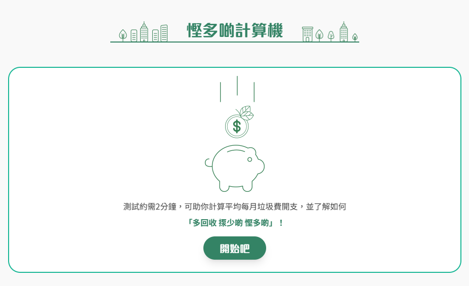 市民亦可透过环保署网页上的“悭多啲计算机”,计算平均每月垃圾费开支,并了解如何“多回收 揼少啲 悭多啲”,测试需时约2分钟。