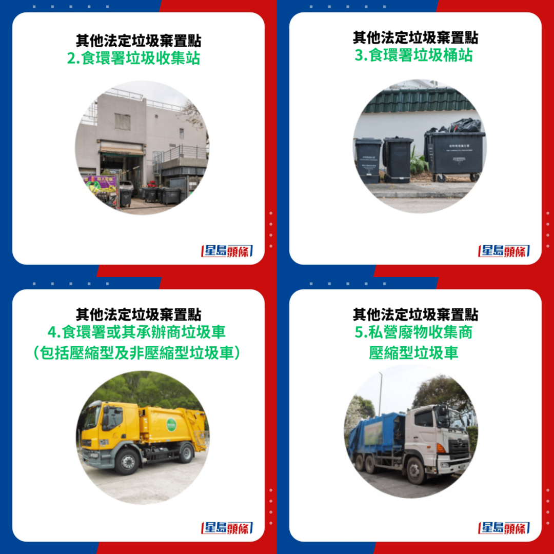 垃圾收费实施后,市民在以下地点弃置垃圾前,必须用指定袋包妥或贴上指定标签。