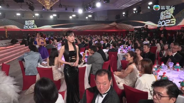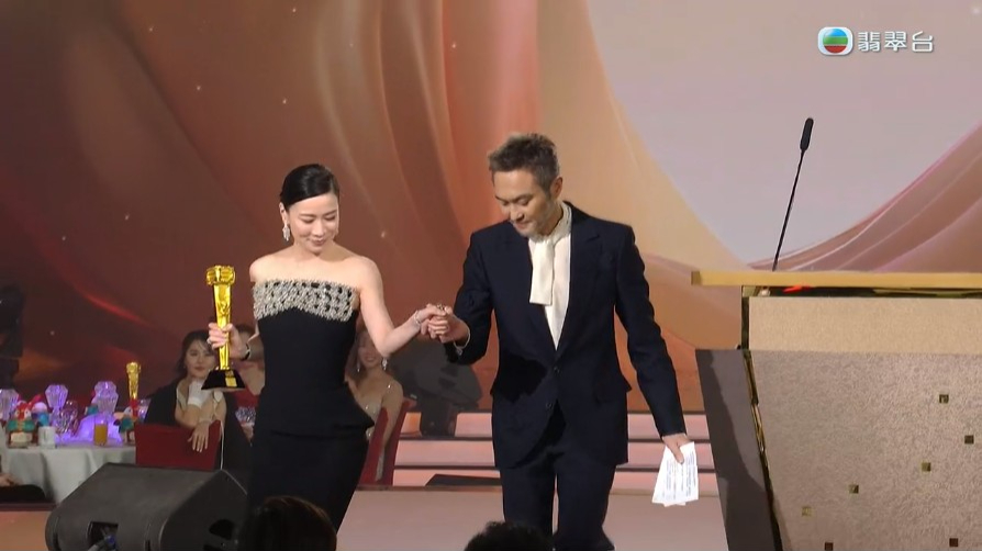 23:10 由林峯和杨茜尧颁最佳女主角,由佘诗曼夺得,阿佘在台上笑容满脸。