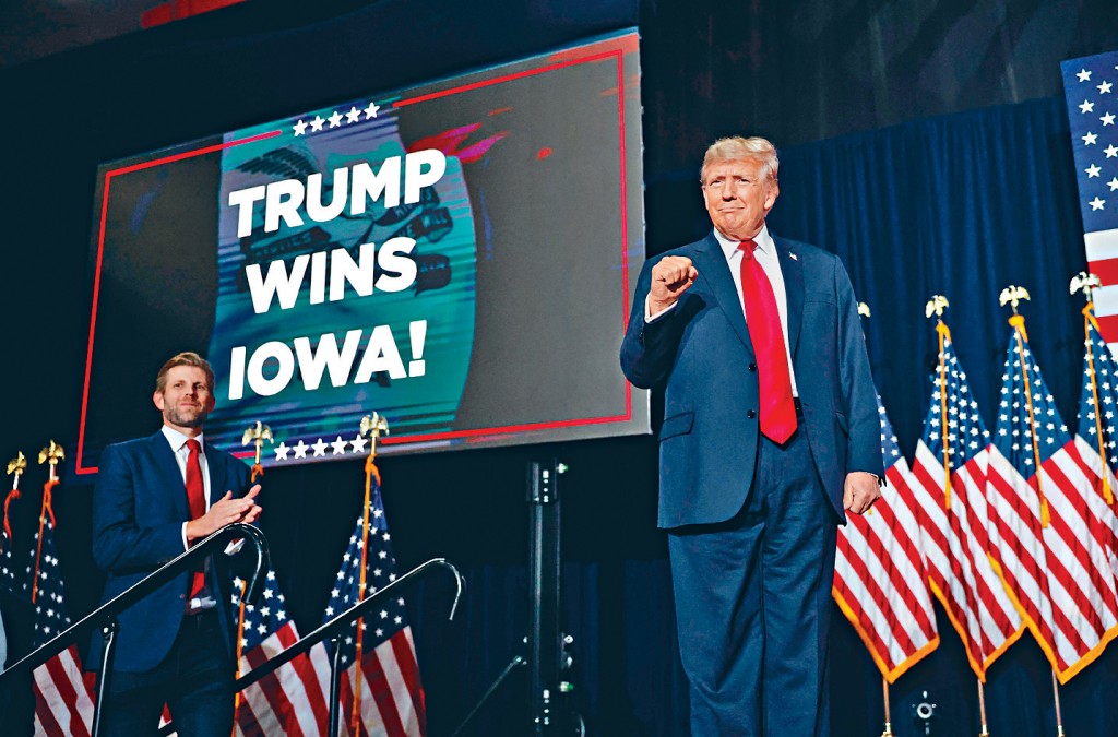 ▲在艾奥瓦州首府德梅因,特朗普周一晚在共和党的党团会议活动上发言。