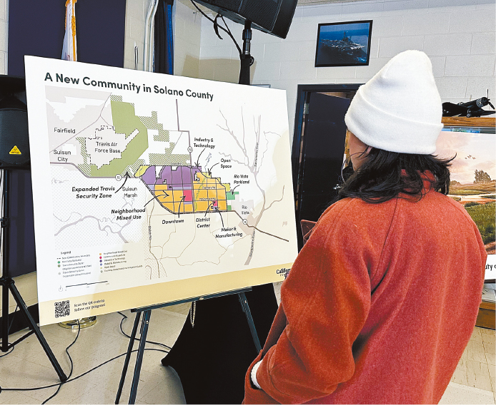周三简报会是斯莱梅克和苹果创办人乔布斯的遗孀劳伦(Laurene Powell Jobs)等其背后富豪支持者所憧憬的社区最详细相关介绍。他们计划在特拉纳斯空军基地(Travis Air Force Base)与里奥维斯塔市(Rio Vista)之间兴建2万栋民宅,供5万人入住。社区由镇屋和三至六层公寓组织,可步行至工作地点、学校、餐厅和超市等。