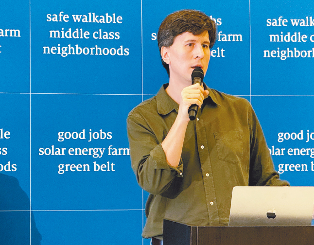 ▲California Forever创办人兼CEO斯莱梅克17日开记者会,介绍在索拉奴县打造新社区的计划。美联社