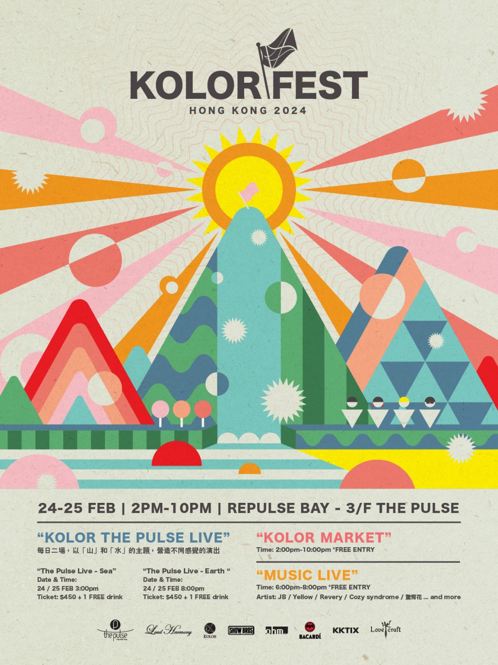 本地乐队Kolor将再次于the pulse举办“KOLOR FEST HONG KONG 2024”,每日设有2场日夜专场“The Pulse Live - Sea & Earth音乐会”,请来多队独立乐队及艺人演出,包括JB、Yellow、 Revery等,现场更会有超过70个市集摊档,让大家Chill住过周末!