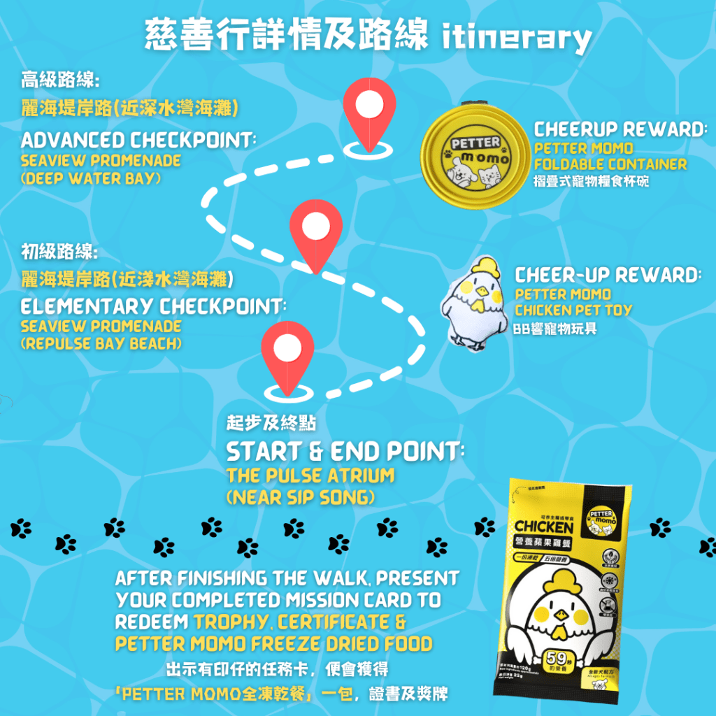 · 初级路线(来回约35分钟):浅水湾the pulse L2中庭木楼梯为起点=>沿海湾道步行到丽海堤岸路(打气点)=>沿途折返回到起步点