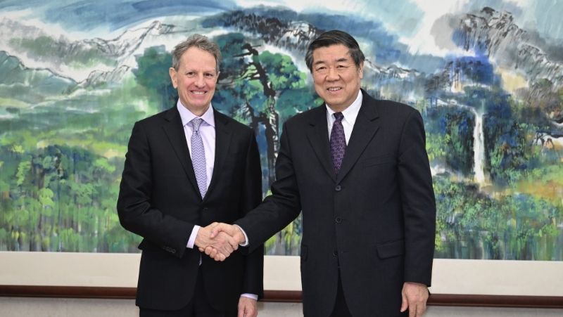 ▲何立峰18日会见美国前财长、华平集团主席盖特纳。 新华社