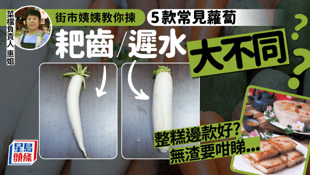 萝卜是常见根茎类蔬菜,也是秋冬季节的当造食材,好像白萝卜、红萝卜、青萝卜,各品种分类都能够用应用于不同食谱。 今日请来宝林市场菜档负责人,拆解街市常见5款萝卜品种的特性、料理方法、宜忌及保存贴士,原来它们并非全属萝卜家族,属性、宜忌各有不同,其中2款萝卜更不能与补气中药同期间服用,加上农历新年临近,应选哪款白萝卜蒸萝卜糕? 白萝卜原来也可分成迟水萝卜、耙齿萝卜两款,当中大有学问。