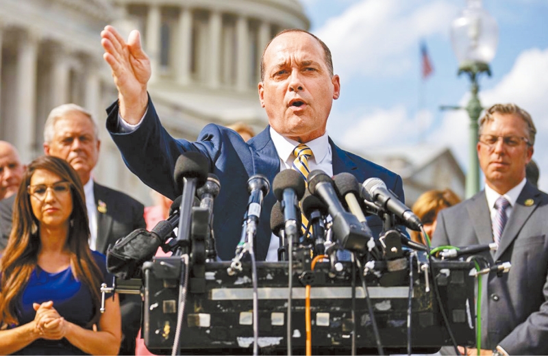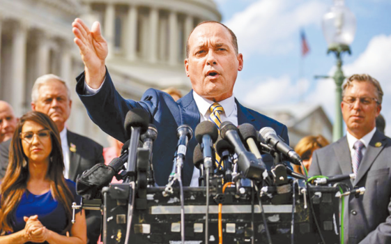 ▲原本支持德桑蒂斯的众议院自由党团主席古德(中),宣布改为支持特朗普竞选总统。 资料图片