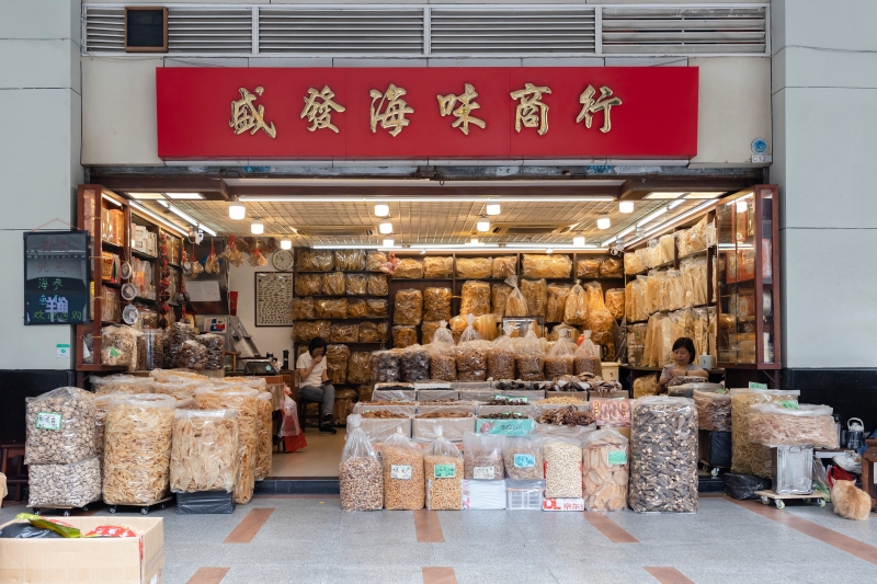 一德路因社学而得名,却因毗邻珠江,水陆两路交通便利,自古商贸兴盛,烟火气十足。从最早的麻品生意,到后来的菜栏、果栏和鱼栏等集市,再到闻名海内外的海味干果集散地,这里持续千年长盛不衰。如今的一德路,不仅海味长盛,还形成了休闲食品、玩具文具、礼品饰品等多个专业市场,声名远扬。