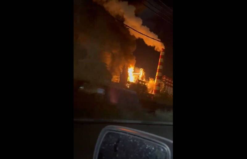 俄媒在社交媒体X曝光的最新影片,可见炼油厂火势相当惊人,该贴文称厂区遭乌克兰无人机袭击,但未获官方证实。