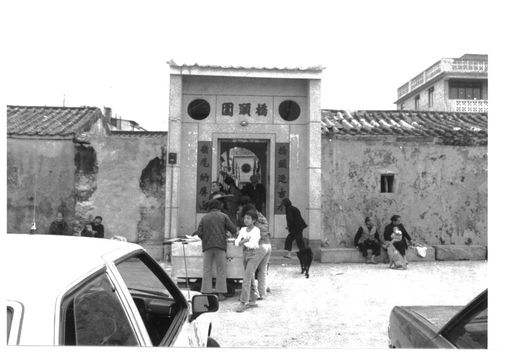 桥头围属“三围六村”,其余分别为上璋围、灰沙围、坑头村、坑尾村、塘坊村、新村、新起村、洪屋村。从旧相可见,居民需经围门出入,有居民坐在围墙下方休憩。时至41年后的今日,围门仍保留着,但两旁围墙已拆卸,取而代之的是一排整齐的村屋。