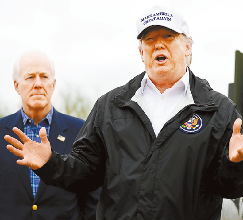 ▲在特朗普先后赢得爱州及新罕州初选后,一些曾经试图与他“保持距离”的共和党人,决定归队支持特朗普,其中之一是德州参议员科宁(后)。 美联社