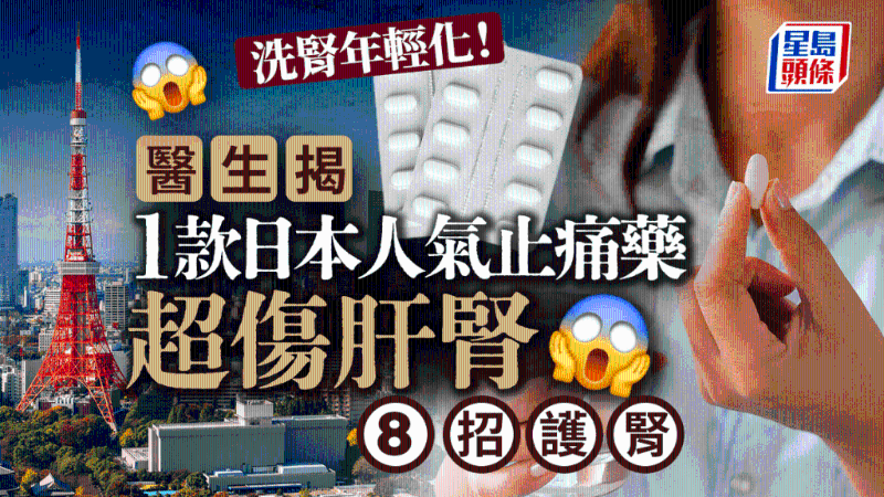 肾衰竭洗肾患者有年轻化趋势。根据香港医管局资料,香港现时有10, 000多名末期肾衰竭患者,需每日透过洗肾维持生命。怎样才能预防肾衰竭?有医生指,除了不良饮食习惯,胡乱服药也会对肾脏造成极大伤害,其中有1款日本人气止痛药,服用后容易伤肝肾,增加患肾衰竭的风险。医生又教8大护肾方法,可防止肝肾受损避免洗肾。