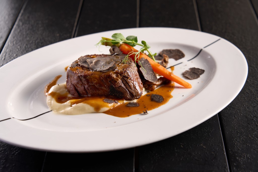 ▲六道菜烟花晚宴连指定香槟/2位用/原价$4,796、优惠价$4,388/P,包括主菜的香脆巴马火腿鮟鱇鱼伴鱼子白酒汁及M5和牛柳伴芹菜根慕丝等。
