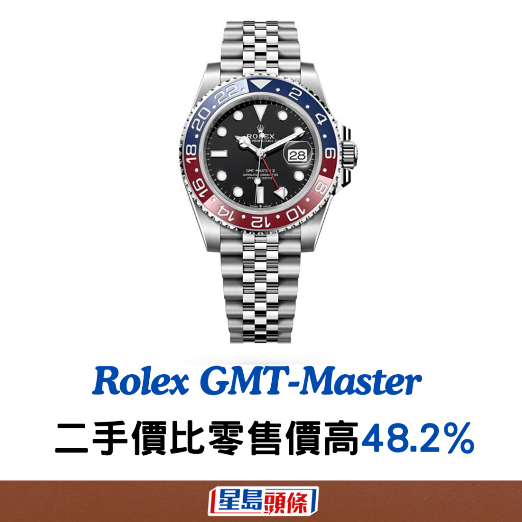 ▲劳力士的GMT-Master系列二手价可比零售价高出48.2%。