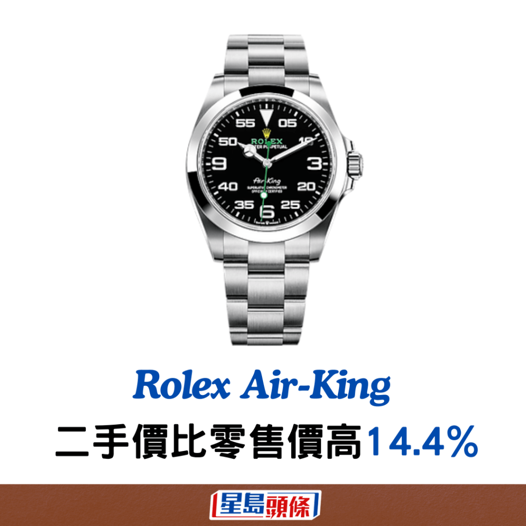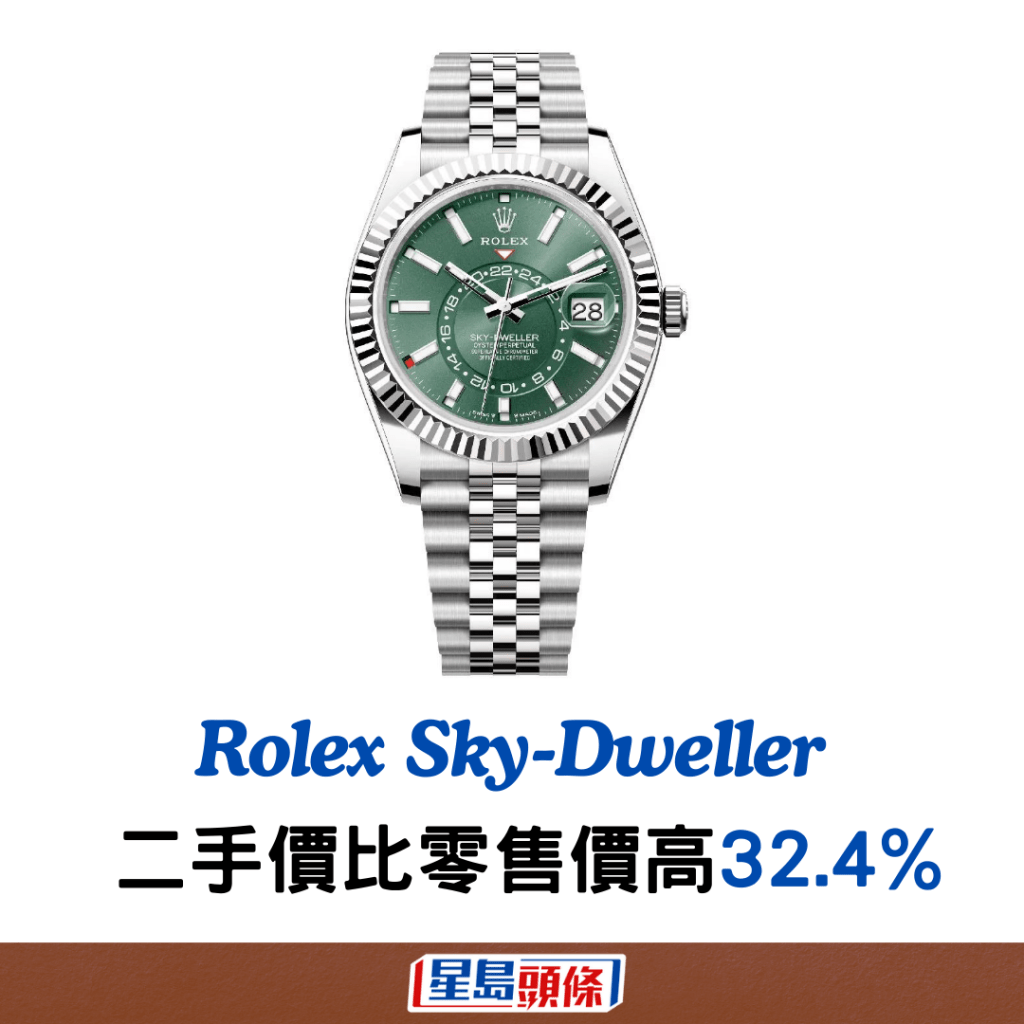 不过值得注意的是,并非所有劳力士都是保值,例如Yacht-Master及Sea-Dwellers系列的二手价格低于零售价。若一手买入Yacht-Master,将亏蚀1.4%,Sea-Dwellers的表现更差,目前二手市场上的交易价格已跌2.7%。