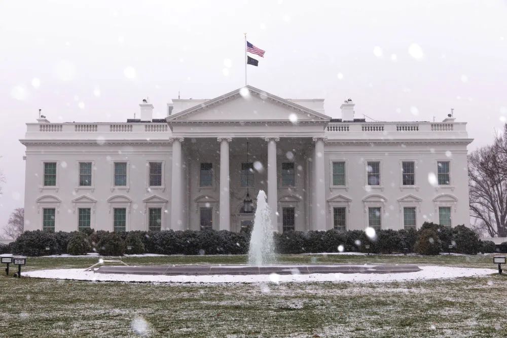 ▲这是1月15日在美国首都华盛顿拍摄的雪中的白宫。新华社