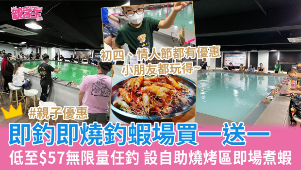 位处观塘的全港最大室内钓虾场Halloland钓虾,场内提供无限量任钓鲜虾,就算钓虾新手亦不用担心,场内有专人教学指导。 店内亦设有自助烧烤区,大家可免费即场烹煮鲜虾,更有两款烹调方法任君选择,喜欢鲜甜可口可选清蒸,喜欢香口惹味则可拣盐烧,更可将自己钓到的鲜虾“打包”回家与家人一同品尝,集食、玩于一身! 现有快闪买一送一优惠,低至$57即钓虾装备任玩,农历新年长假期、情人节(除2月10日至12日)亦可享优惠,家长可带小朋友一尝钓虾滋味。