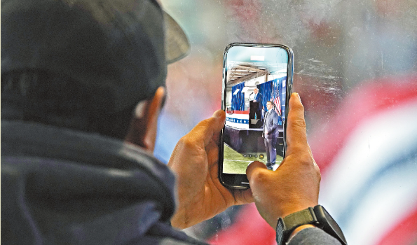 ▲图为前总统特朗普1月27日出席拉斯维加斯一场竞选活动,出席者在台下拍照。美联社