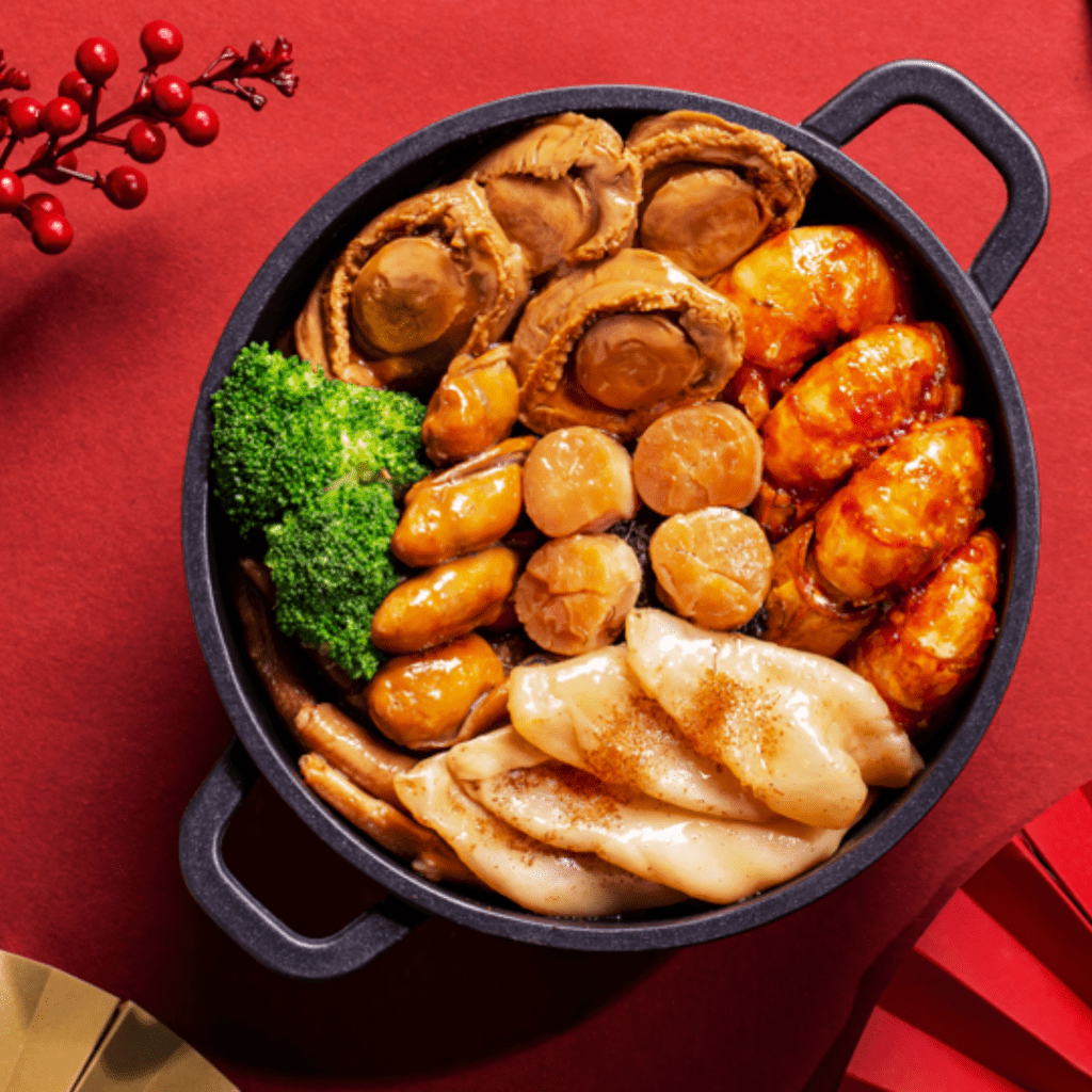 荣获米芝莲星级的中菜食府夏宫,味道质素固然有保证! 今年的夏宫富贵聚宝盆菜,包括原只二头汤鲍、宗谷瑶柱甫 、发财蚝豉、海参,款款均鲜味弹牙。 而现时购买盆菜,还会附送夏宫X.O.酱及珀翠纯素X.O.酱各一瓶,微辣味道更显鲜味!