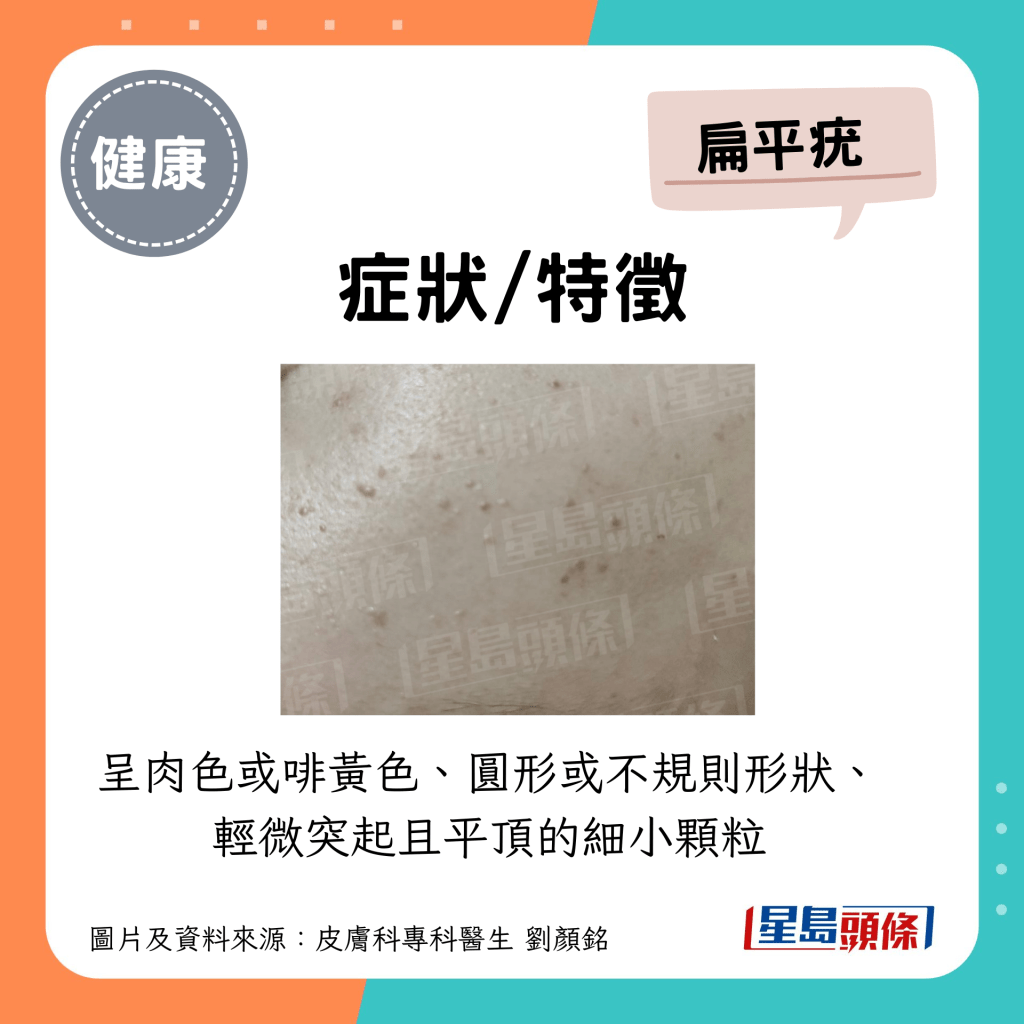 *扁平疣属于病毒感染,清除后仍有机会复发,免疫力较弱人士的复发风险较高。