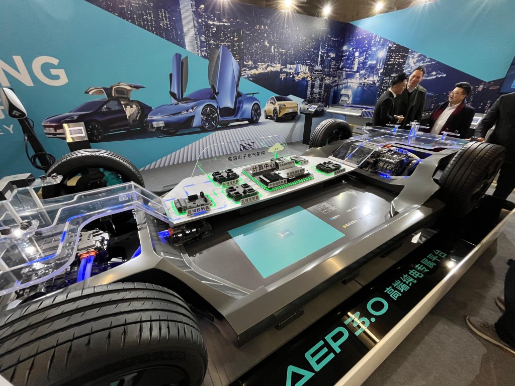 ▲Aion弹匣电池及AEP3.0平台等先进技术成果也在陈列室内展出。