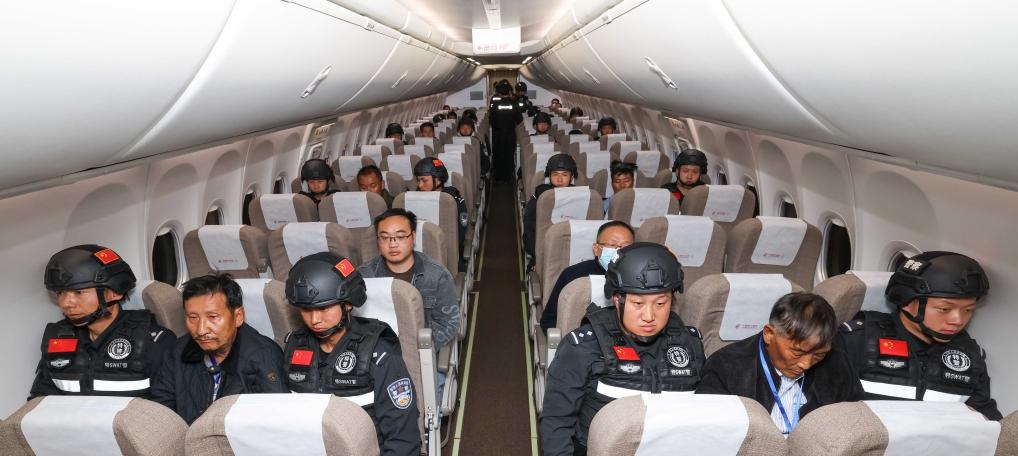 押解白所成等10名缅北果敢电诈犯罪集团重要头目的民航包机昨晚降落在云南昆明长水机场。央视和新华社发布的多张照片,显示白所成等在机舱,身边均有两个全副武装、戴头盔的警察戒备,后排还有专人盯看。新华社还发布了白所成、白应苍、魏怀仁、刘正祥、刘正茂、徐老发抵达机场被押解的“大头相”。相关链接:缅北末日︱“果敢王”白所成等10重犯押解回国,四大家族“全军覆没”