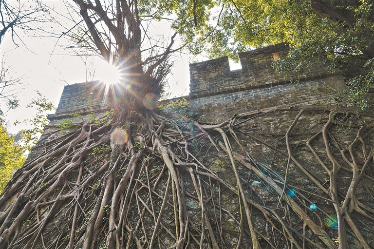 ▲古城墙上,榕树参天