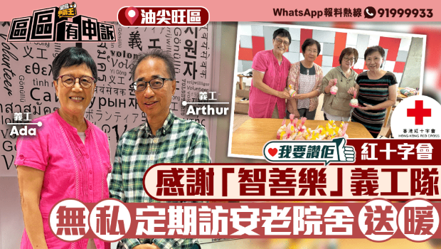 香港红十字会以服务社群为己任,各项服务背后,全赖逾28,000名义工的付出,为社会上有需要人士提供了适切的服务。 义工不分年龄、性别、种族,共通点是皆怀着无私的心,各展所长活出人道精神,令人敬佩。 其中“智善乐”义工队于2023年初成立,主要招募50岁或以上人士定期探访安老院舍,为长者送上关怀及欢乐。