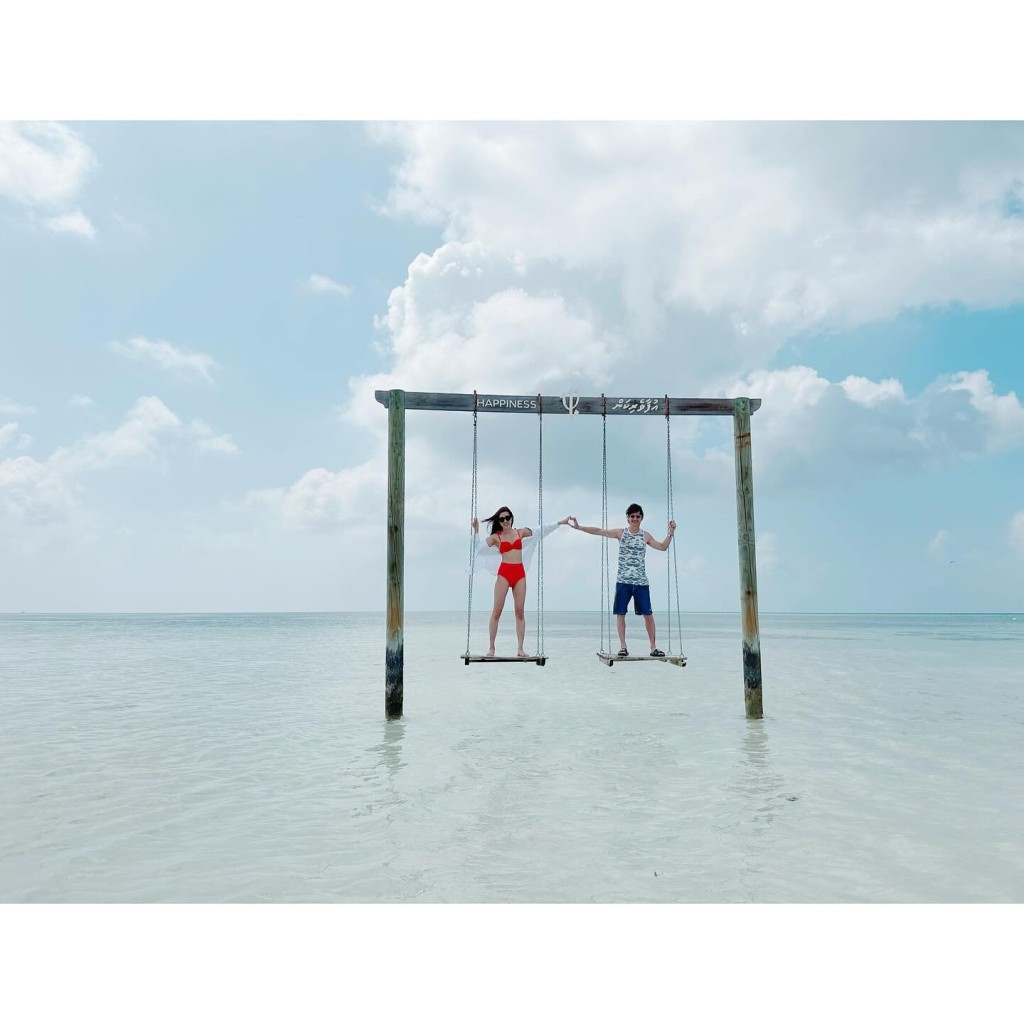 ▲钟嘉欣和老公庆祝结婚9周年, 去了马尔代夫过二人世界。