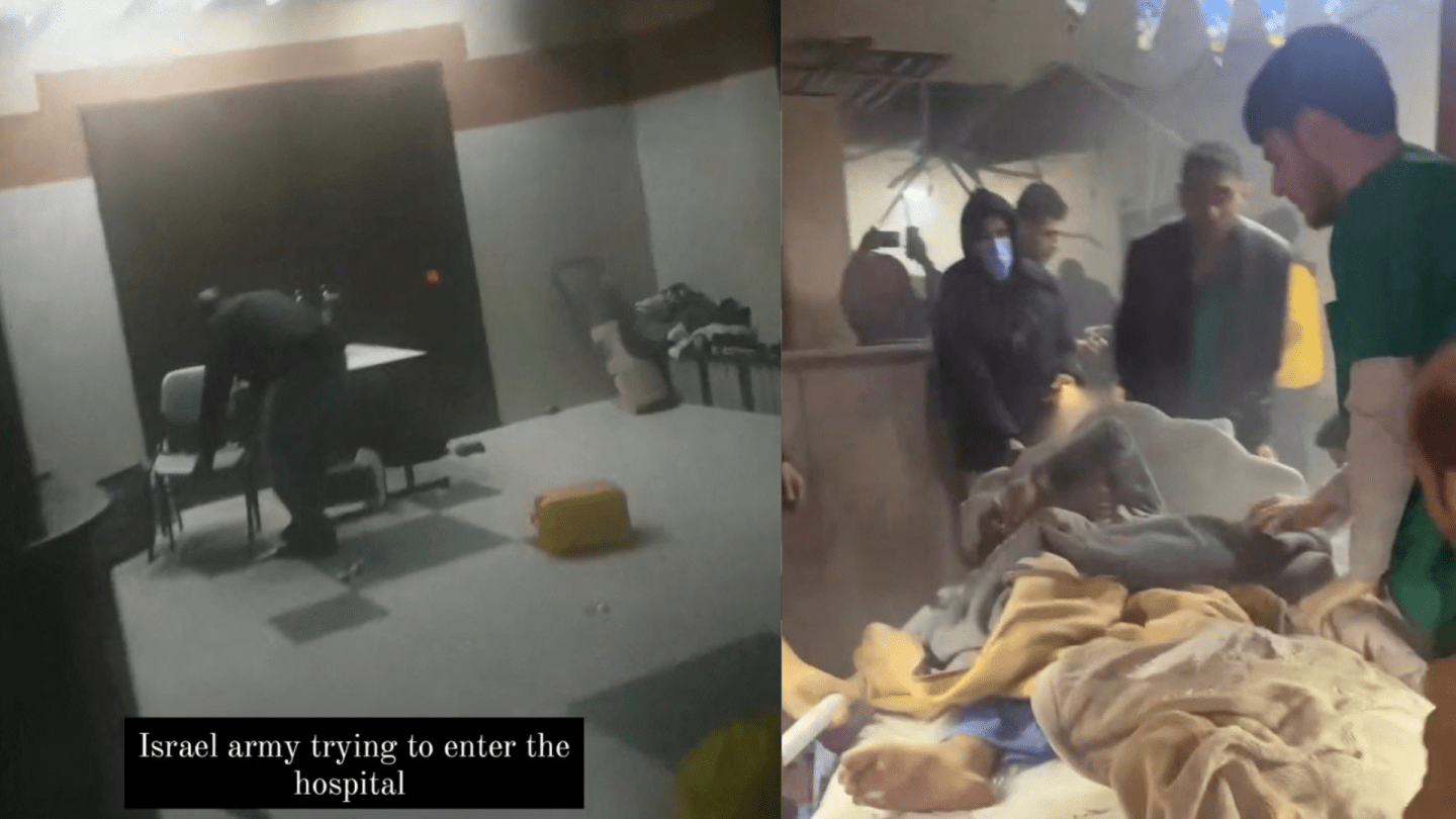 哈马斯卫生部门指以军在黎明时份,强迫医院内的无家可归者和医疗人员家属撤出之后用推土机拆除医院南墙攻入,攻击救护车总部、难民帐篷和医院的乱葬岗。大量病人无法撤离医院。