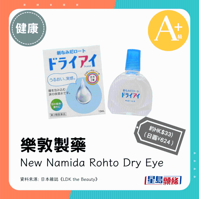 眼药水推介|长时间看手机、电脑,容易眼干眼痛,要经常滴眼药水?可能是患了干眼症!市面眼药水种类繁多,含甚么成分、功效的眼药水才最适合自己?干眼症、戴隐形眼镜人士应如何选择?日本杂志《LDK》精选13款声称针对干眼症的日本眼药水进行实测及评分。结果,有3款获评分A级,包括“乐敦制药”的眼药水。获推介的名单中,最便宜1款仅售港币$22!