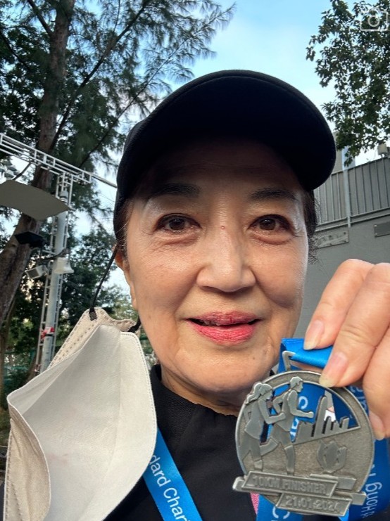 ▲73岁马海伦素颜跑渣马。