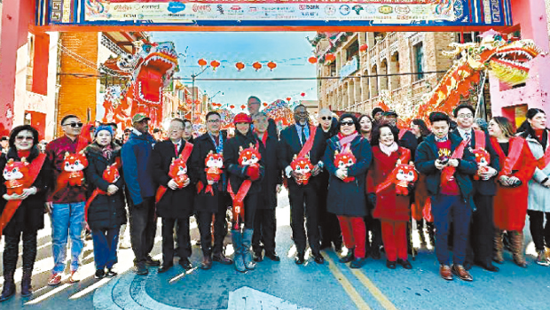 ▲甲辰龙年南华埠举行新春大游行,主流政要、两岸官员与社区领袖一起参与新春大游行。 梁敏育摄