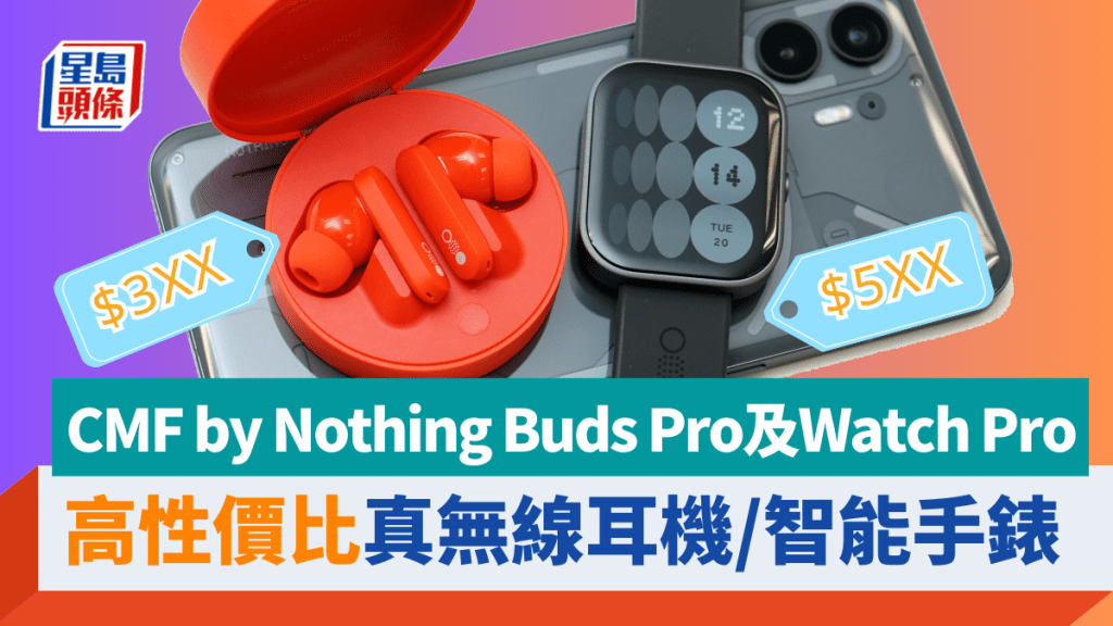 以透明耳机及闪灯手机成功上位的Nothing,日前以子品牌CMF推出走高性价比路线的智能手表Watch Pro及真无线耳机Buds Pro,定位不错入门,最便宜一款不用四百元有交易,然而没有牺牲设计及功能,卖相不落俗套,Watch Pro还有齐GPS定位及免提通话,Buds Pro的降噪效果达45dB,比千元定价的Nothing Ear(2)更强,连通话亦有AI降噪,即使表现非最完美, 但这个价钱绝对物有所值。