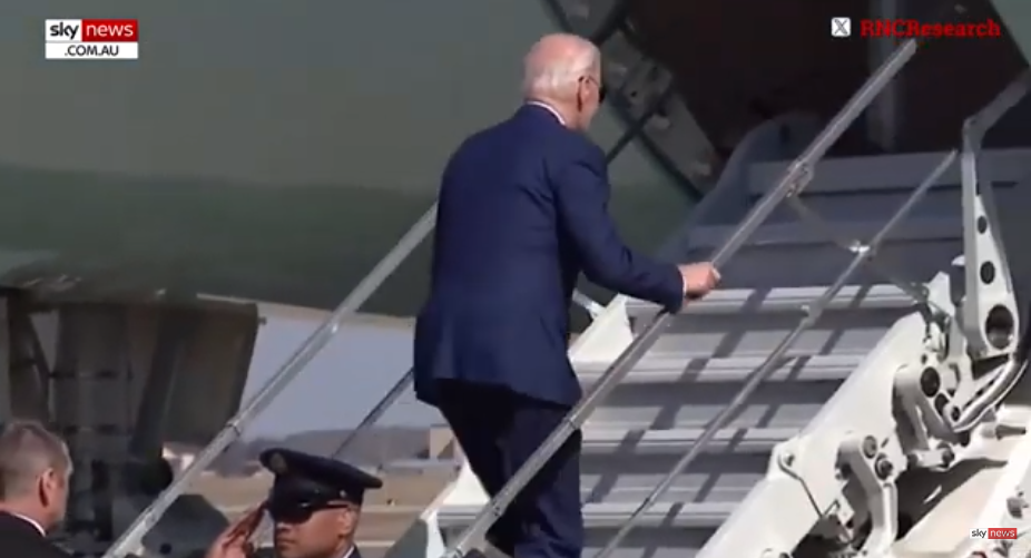 拜登连2度在登机时差点摔跤的画面立即在网路上疯传,共和党捡到枪,借机大肆嘲讽一番,质疑拜登的健康状况。